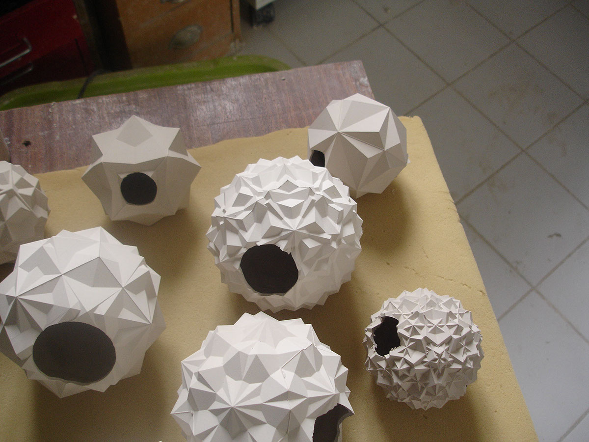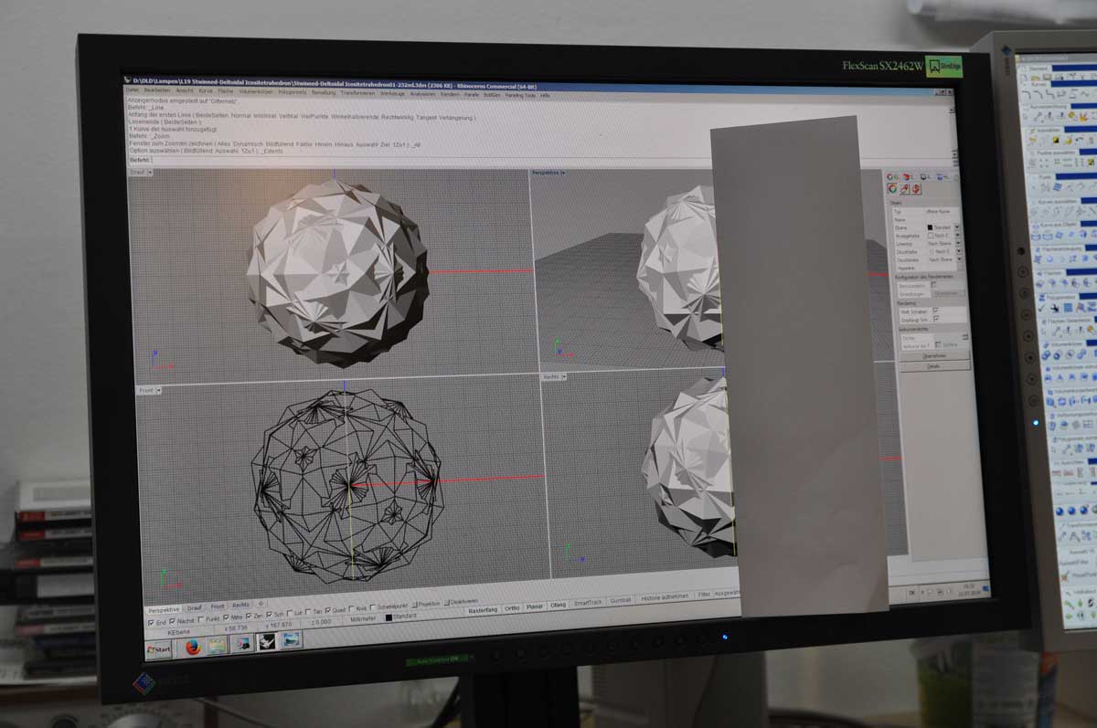Durch die hohe Transparenz des weißen Bonechinas haben die Leuchten eine Anmutung von gefaltetem Papier. Die Außenwände sind extrem dünnwandig gegossen, sodass die Lampe im eingeschalteten Zustand ein interessantes Spiel aus Kanten und Flächen zeigt.