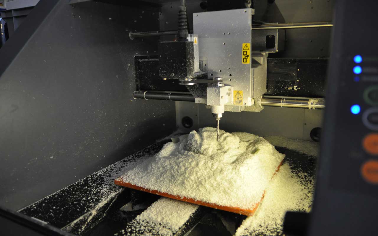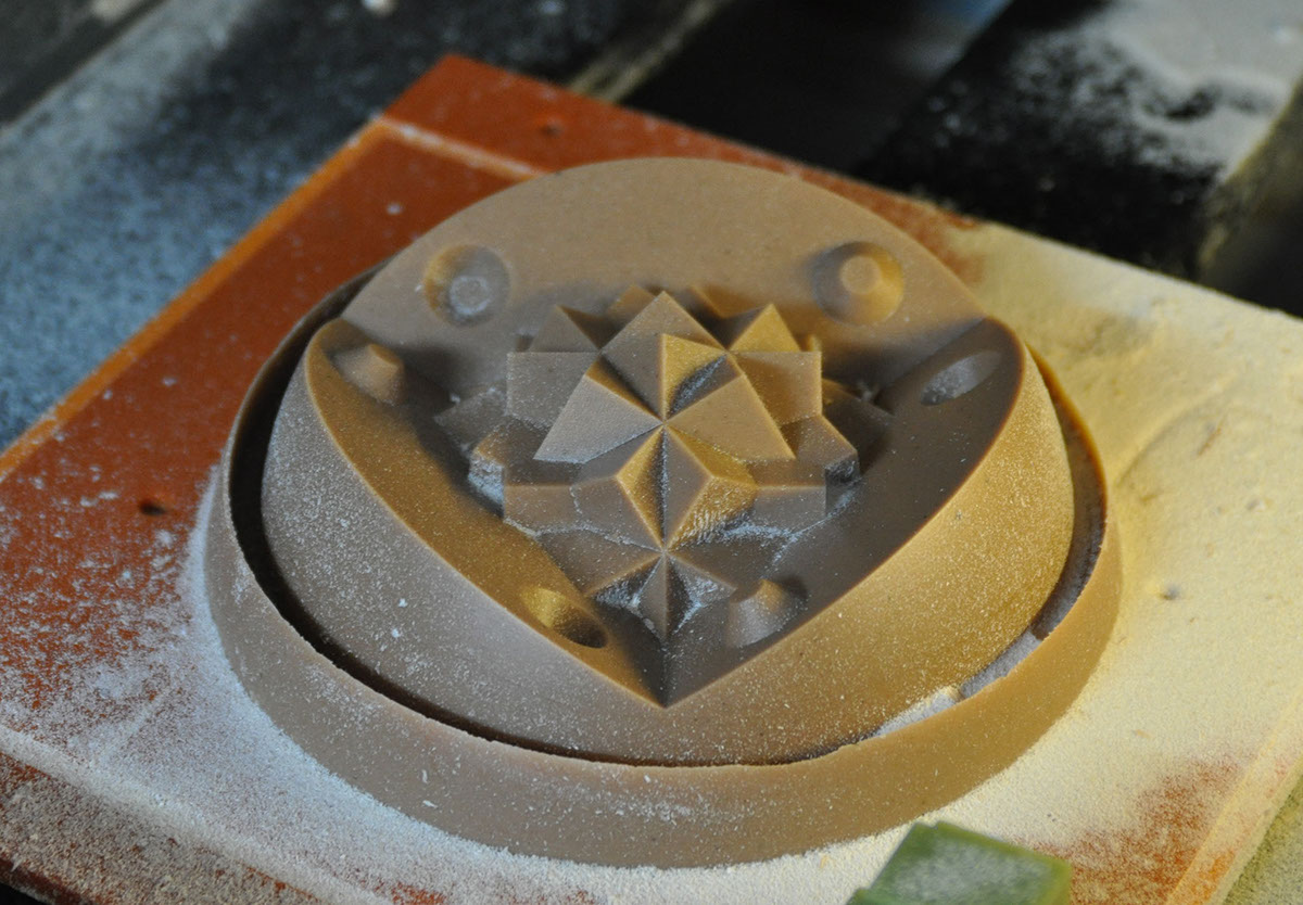 Scharfkantige, geometrische Formen aus Porzellan werden von LEDs durchleuchtet.